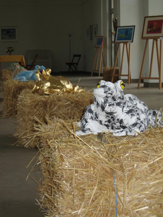 Jetzt will ich Euch zunächst erzählen, wie ich auf die Idee mit den Fröschen kam! Vielleicht wisst Ihr, dass ich seit vielen Jahren - neben meiner Malerei - Figuren aus Pappmache, meist kleine Vögel, herstelle. Immer schon wollte ich größere Figuren machen!